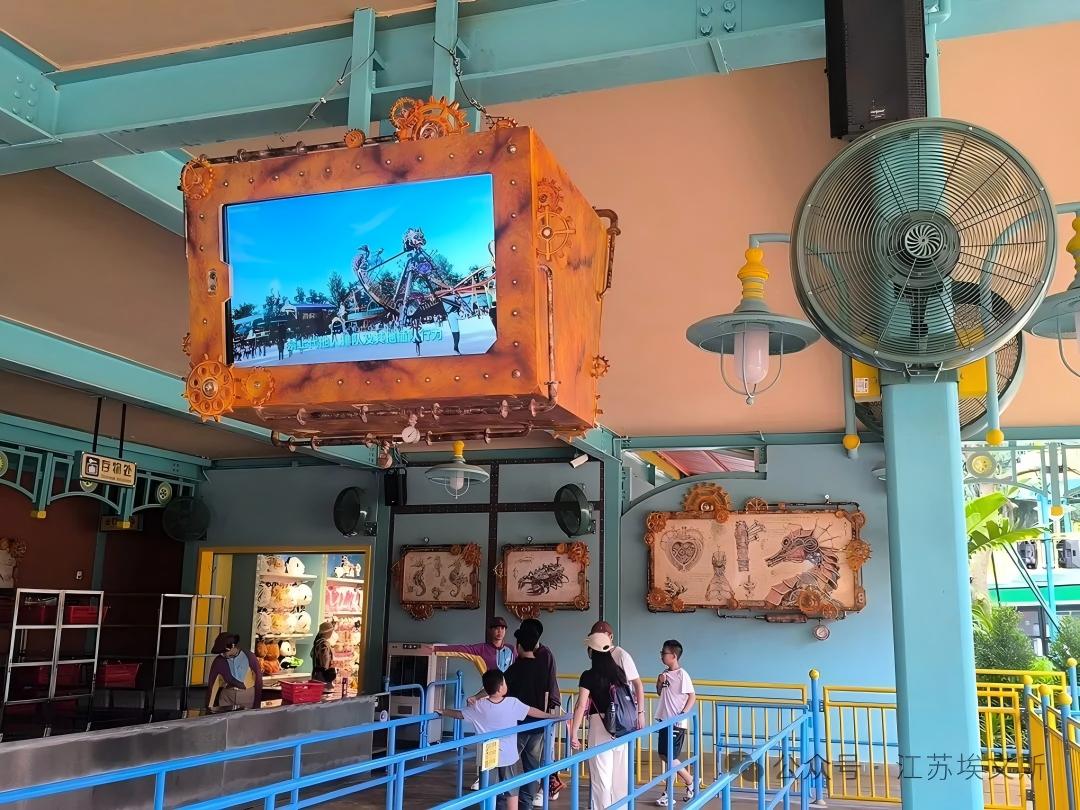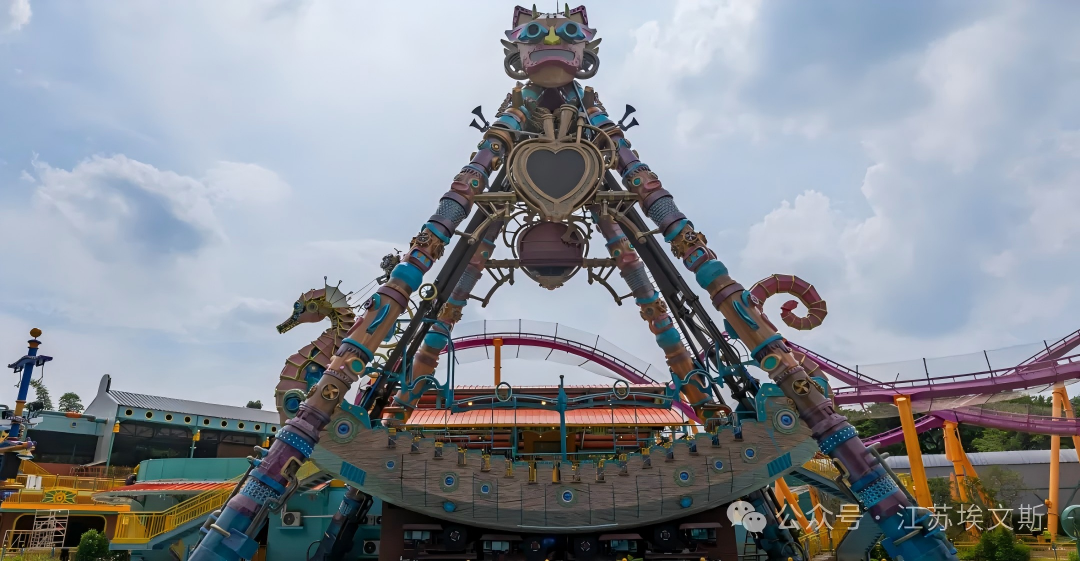 弹射过山车和海盗船所在的“朋克奇景”主题区以蒸汽朋克美学为设计核心,通过3D道具、彩绘装饰等包装效果,结合音效、特效打造出沉浸式游玩场景。