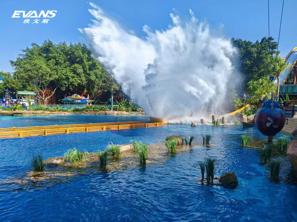 反馈;同时,项目配置烟效、雾效装置,结合区域涌泉、互动水枪系统,强化场景的动态互动感,提升体验的代入度。