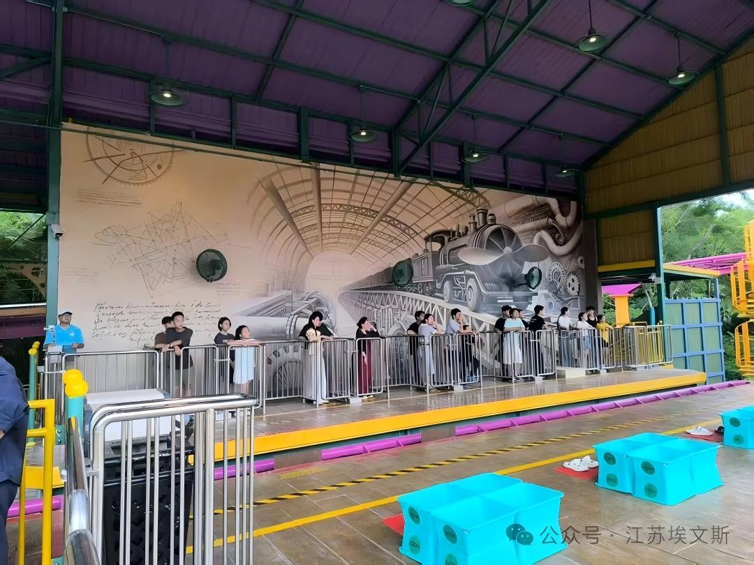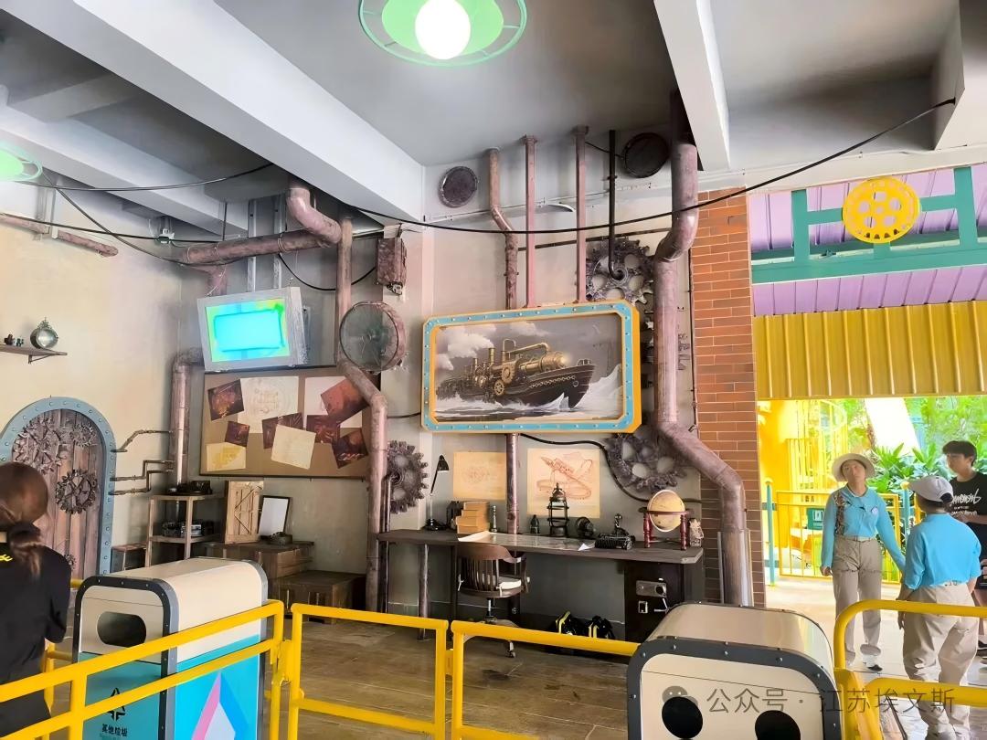 弹射过山车和海盗船所在的“朋克奇景”主题区以蒸汽朋克美学为设计核心,通过3D道具、彩绘装饰等包装效果,结合音效、特效打造出沉浸式游玩场景。